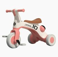 Dieses 2-in-1-Dreirad-Kinderfahrrad und Laufrad ist ideal für kleine Kinder, die erste Fahrerfahrungen sammeln. Dank des cleveren Designs lässt es sich im Handumdrehen vom Fahrrad zum Laufrad umbauen. Die Pedale sind mit einem Klick abnehmbar, sodass Ihr Kind in seinem eigenen Tempo Radfahren und Balancieren lernen kann. Der weiche Sattel, die stabile Konstruktion und die lustigen Licht- und Musikeffekte sorgen für extra Spielspaß. ✔ Wichtigste Vorteile 2-in-1-Fahrrad und Laufrad Die Pedale lassen sich mit einem Klick abnehmen, wodurch sich das Fahrrad schnell in ein Laufrad verwandelt. So kann Ihr Kind zunächst das Gleichgewicht halten und später spielerisch das Treten lernen. Stabiles und sicheres Design Das Laufrad verfügt über drei Räder, die für zusätzliche Stabilität und Sicherheit beim Fahren sorgen. Ideal für kleine Kinder, die noch das Lenken und Fahren üben. Bequemer, weicher Sattel Der weiche Sattel (Kunstleder) bietet hohen Sitzkomfort und ermöglicht Kindern längeres, unbeschwertes Spielen. Fördert die Entwicklung Unterstützt Gleichgewicht, Koordination und Motorik. Kinder lernen spielerisch, ihren Körper besser zu kontrollieren. Robust und langlebig Der stabile Rahmen sorgt für eine langlebige und zuverlässige Konstruktion, die auch intensiver Nutzung standhält. Tolle Extras Ausgestattet mit Musik und Lichteffekten macht das Fahrradfahren für Kinder noch mehr Spaß. 📋 Technische Daten Typ: 2-in-1-Fahrrad und Laufrad Empfohlenes Alter: ab 1,5 Jahren Maximale Belastung: bis zu 60 kg Gewicht: 3 kg Gesamtlänge: 69 cm Lenkerhöhe: 47 cm Lenkerbreite: 32 cm Lenker: 27 × 15 cm Vorderrad: 200 × 55 mm (Schaumstoff) Hinterrad: 160 × 42 mm (Schaumstoff) Rahmenmaterial: Kunststoff Sattel: weiches Kunstleder Pedale: mit einem Klick abnehmbar Extras: Musik und Beleuchtung